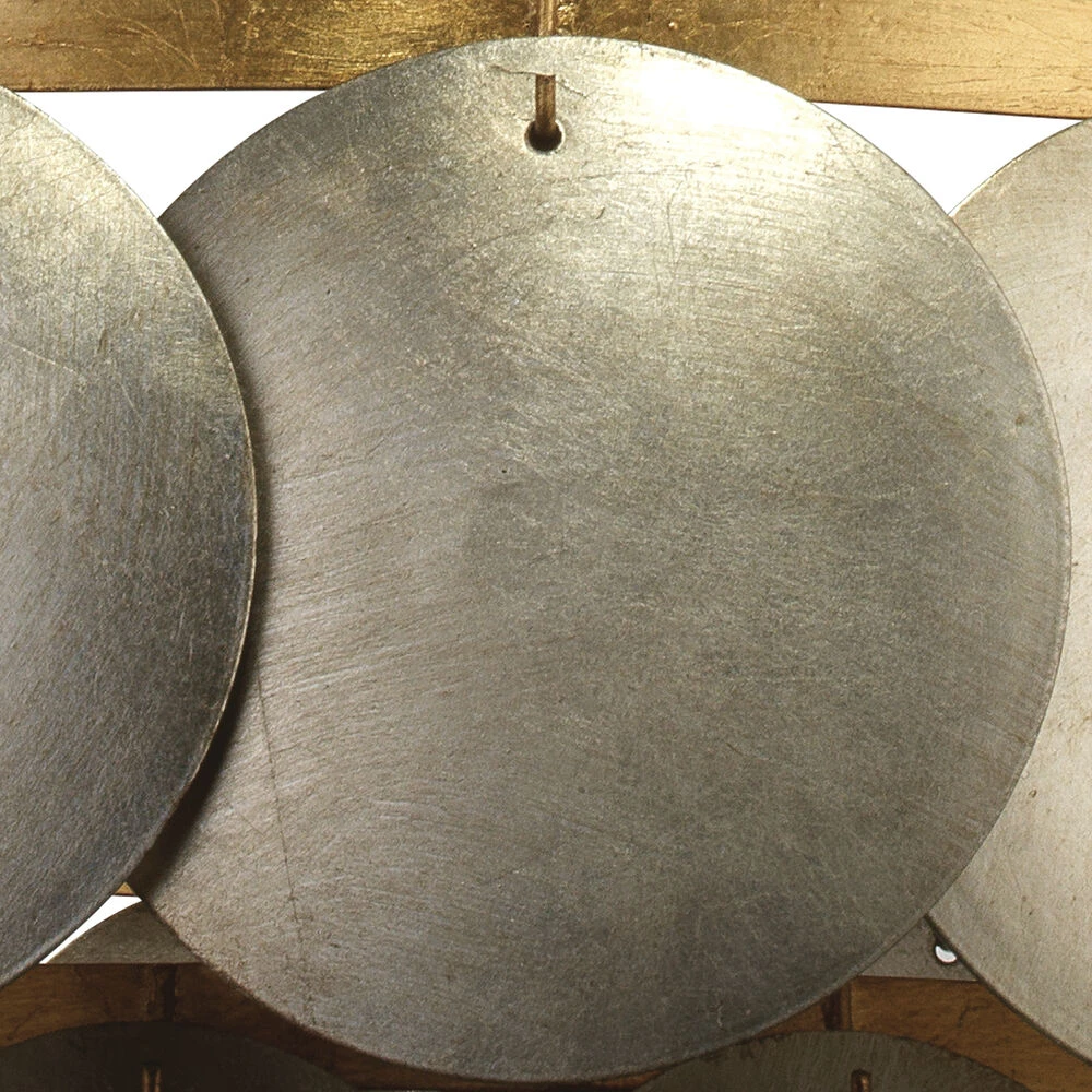 We love this chandelier and its two tones of metals. Hand leafed in a champagne finish with metal disks in three tiers makes this piece a really special statement.