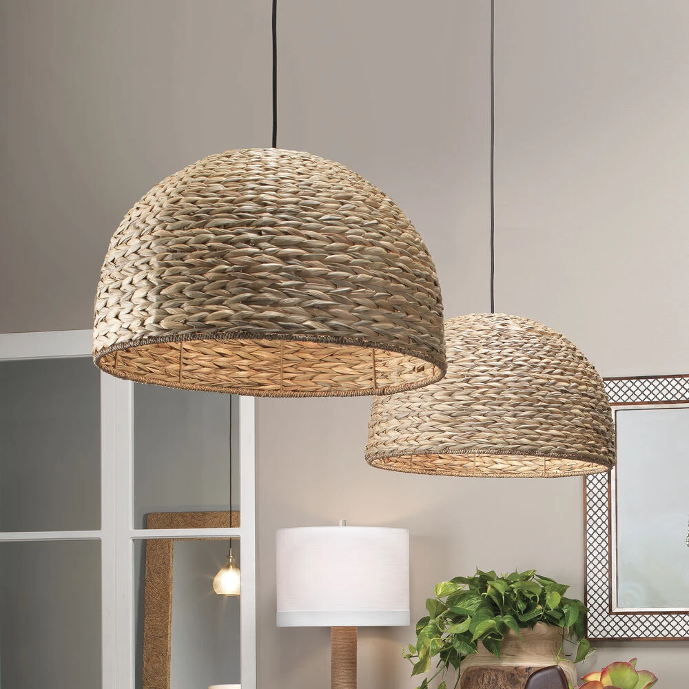 This pendant allows the uses braided sea grass to bring the seashore indoors.