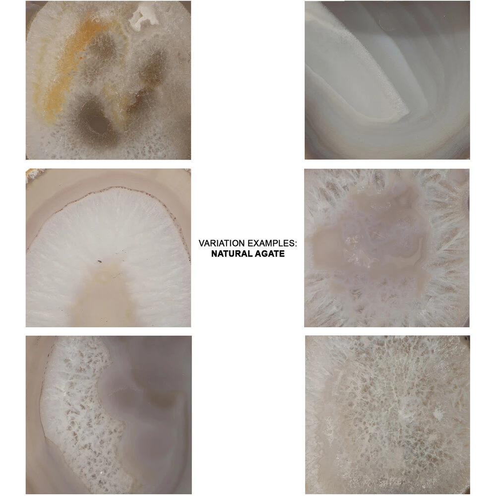 Three unique slices of natural agate stone are individually arranged to create extraordinary pieces of art. Embrace this wall sconce’s individuality and you will have a truly one-of-a-kind piece on your wall.