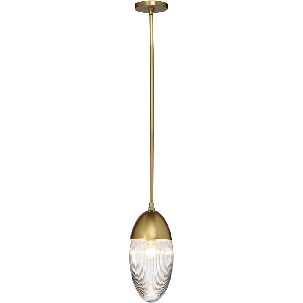 The warmth of polished metal pairs eloquently with thick, ribbed glass in these elevated pendants. Their celestial shape and mid-century inspiration add a splash of style wherever they are hung, and they are especially impactful when displayed in multiples. Use several to artfully illuminate a kitchen island or hang three at varying heights above a dining table or in an entryway.